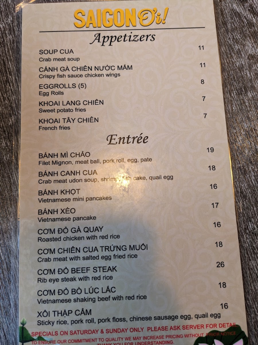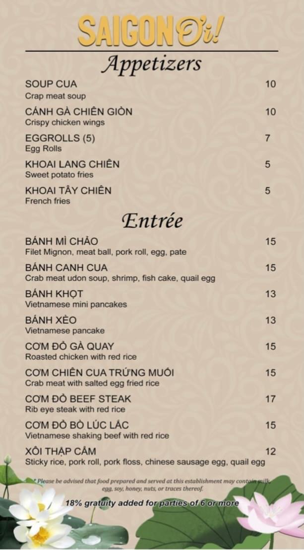 Welcome to Saigon Oi Restaurant, a delightful haven for lovers of authentic Vietnamese cuisine nestled in the heart of Sacramento. Located at 6835 Stockton Blvd, Sacramento, CA 95823, this gem invites you to indulge in a culinary journey that transcends the ordinary. With a menu that showcases the vibrant and rich flavors of Vietnam, you're in for a treat!
