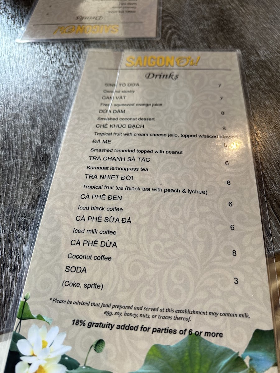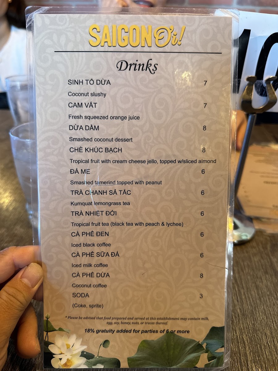 Completing your dining experience, why not indulge in one of their refreshing beverages such as the Sinh Tố Dừa ($7.00), made from fresh coconut and perfectly blended to quench your thirst? Or try the rich Cà Phê Sữa Đá ($6.00), an iconic Vietnamese iced coffee that’s as energizing as it is delicious.